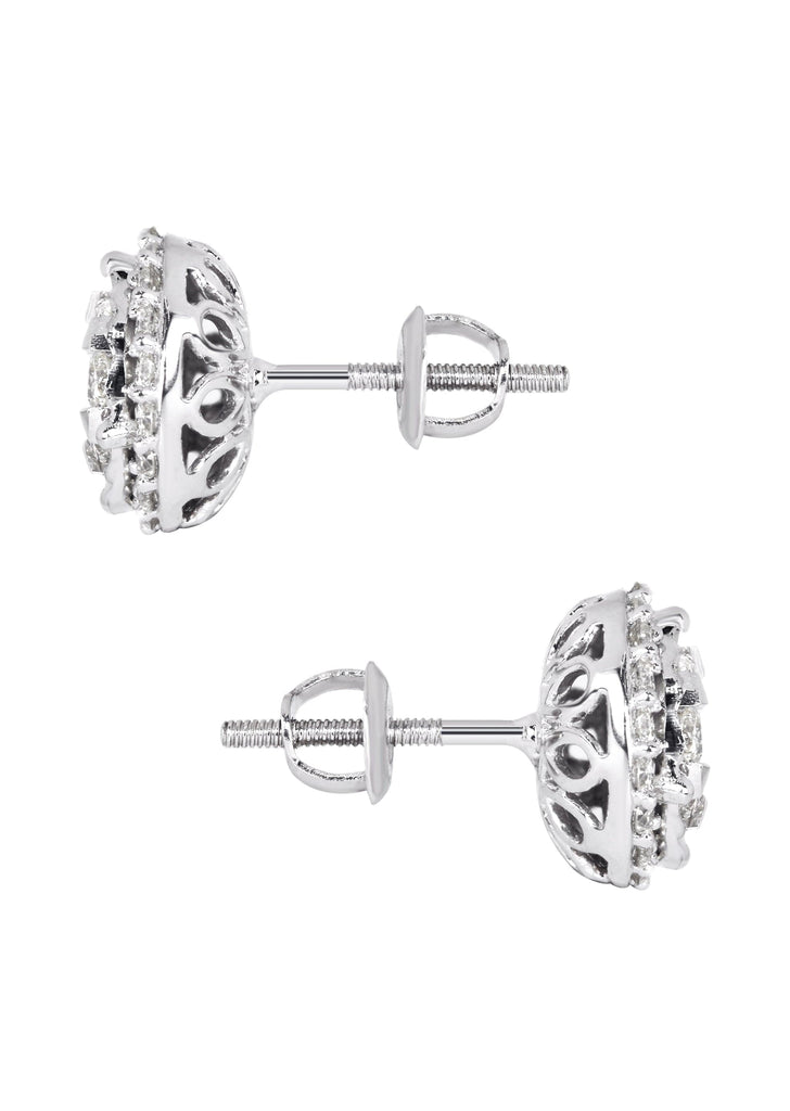 Diamond Stud Earrings In 14K White With Approximately 0.85 Carats Of Diamonds. Earrings Come With An Average Length Of 0.36 Inches And 0.36 Inches In Width.