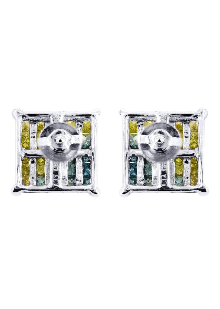 Yellow Canary And Blue Diamond Earrings In 14K White Gold With Approximately 1.27 Carats Of Diamonds.Earrings Come With An Average Length Of 9 Mm And 9 Mm In Width.