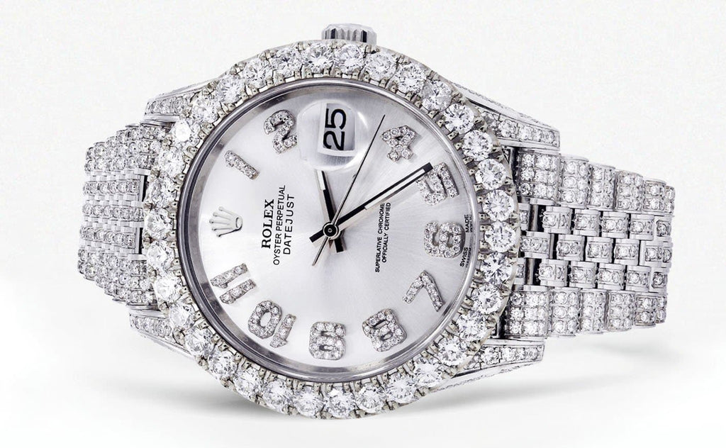 Diamond Iced Out Rolex Datejust 41 | 25 Carats Of Diamonds | Custom Silver Diamond Dial | Jubilee Band