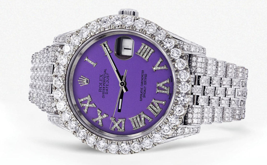 Diamond Iced Out Rolex Datejust 41 | 25 Carats Of Diamonds | Custom Purple Roman Diamond Dial | Jubilee Band