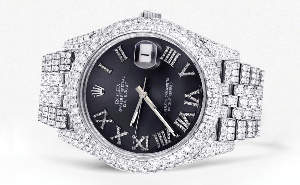 Diamond Iced Out Rolex Datejust 41 | 25 Carats Of Diamonds | Custom Grey Roman Numeral Diamond Dial | Two Row | Jubilee Band