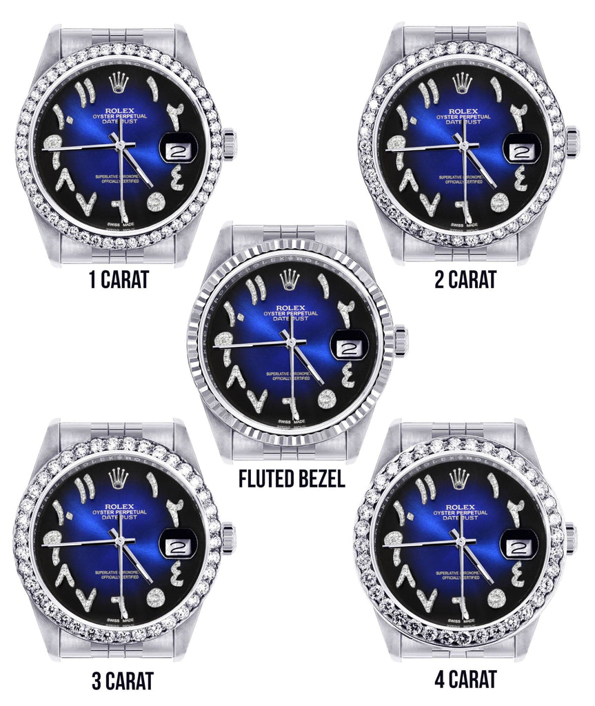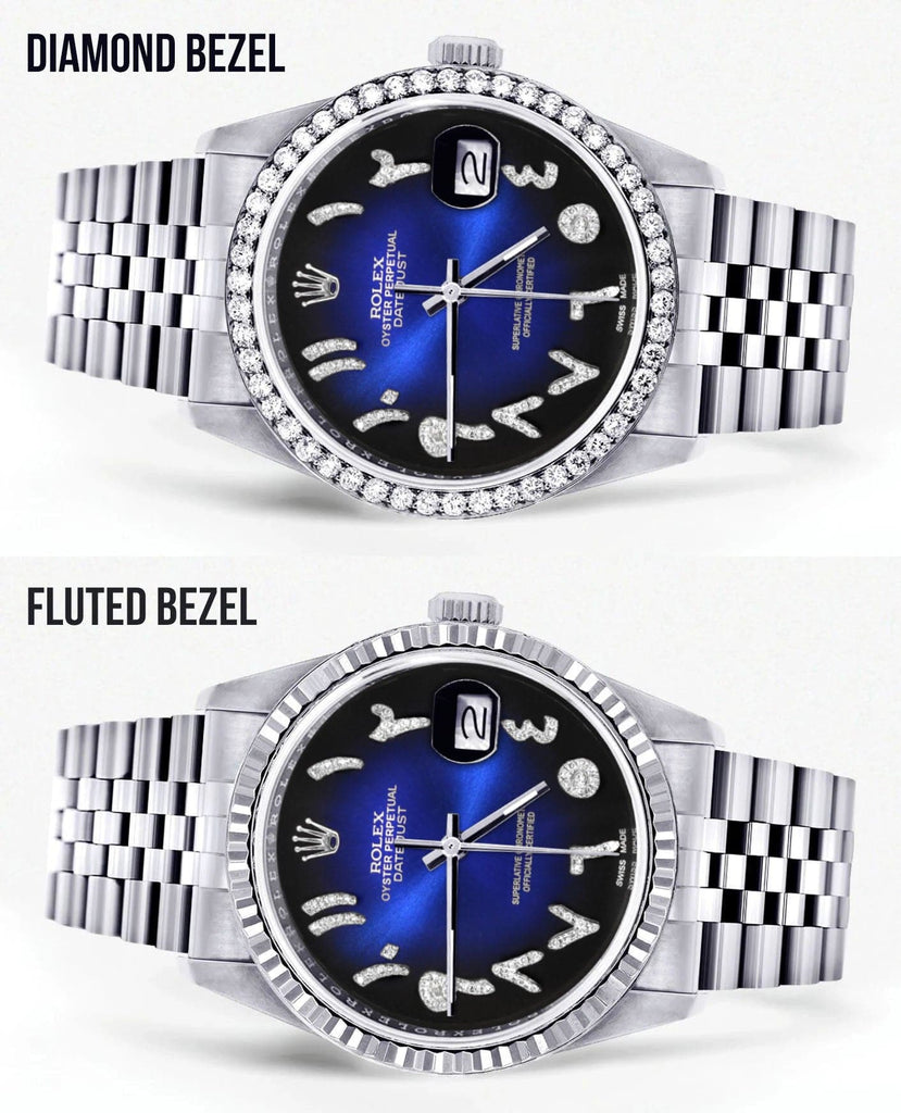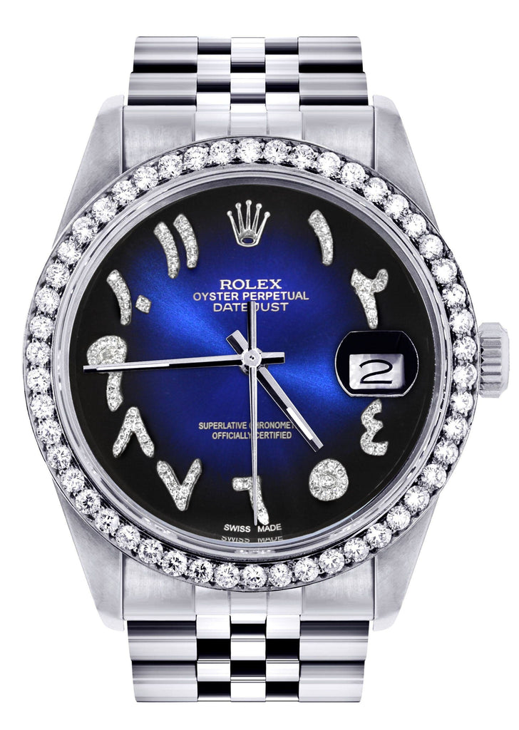 Diamond Mens Rolex Datejust Watch 16200 | 36Mm | Blue Black Arabic Diamond Dial | Jubilee Band