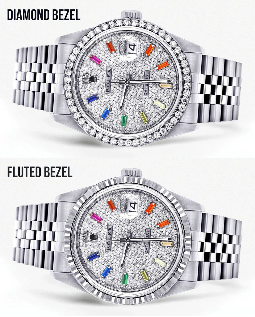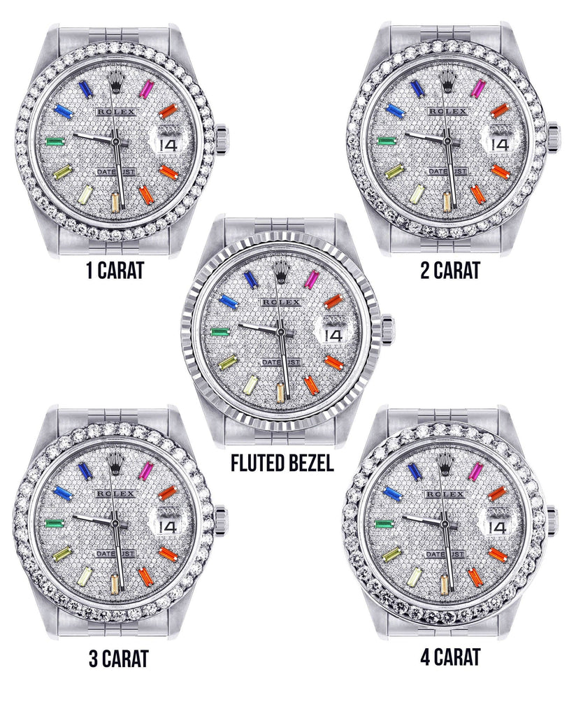 Rolex Datejust 36MM with a Jubilee Band. Customizable Diamond Bezel From 1.00-4.00 Carat. Below are more details of the watch