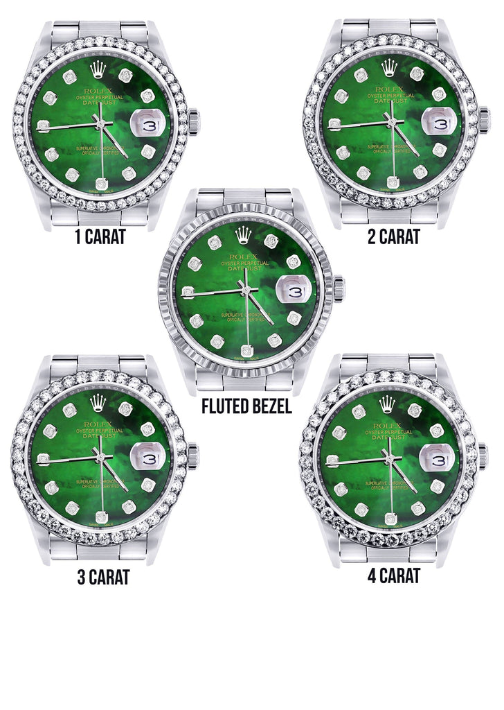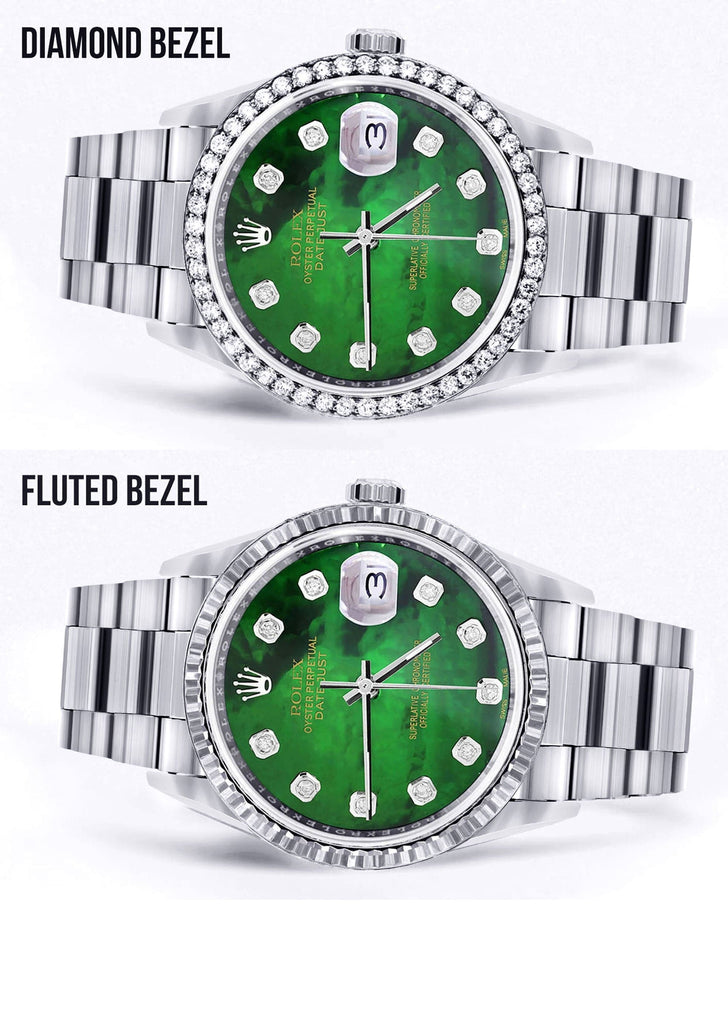Diamond Mens Rolex Datejust Watch 16200 | 36Mm | Green Diamond Mother Of Pearl Dial | Oyster Band
