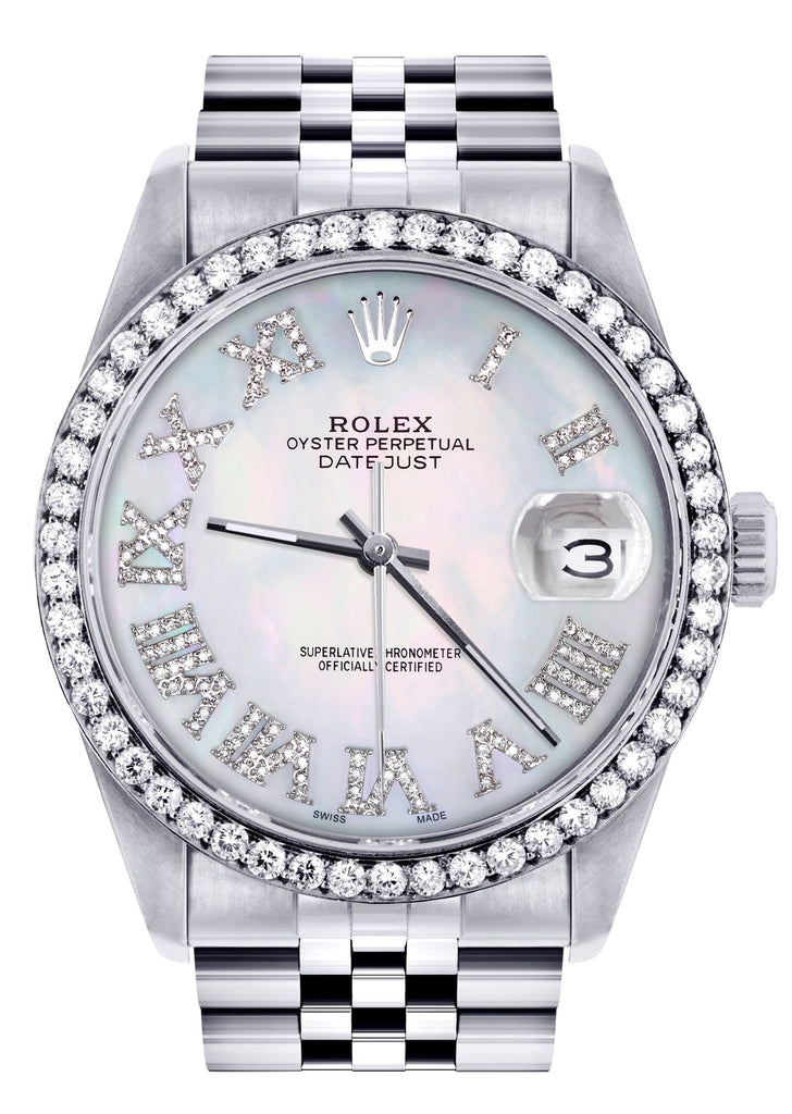 Diamond Mens Rolex Datejust Watch 16200 | 36Mm | Light Blue Mother Of Pearl Roman Numeral Dial | Jubilee Band