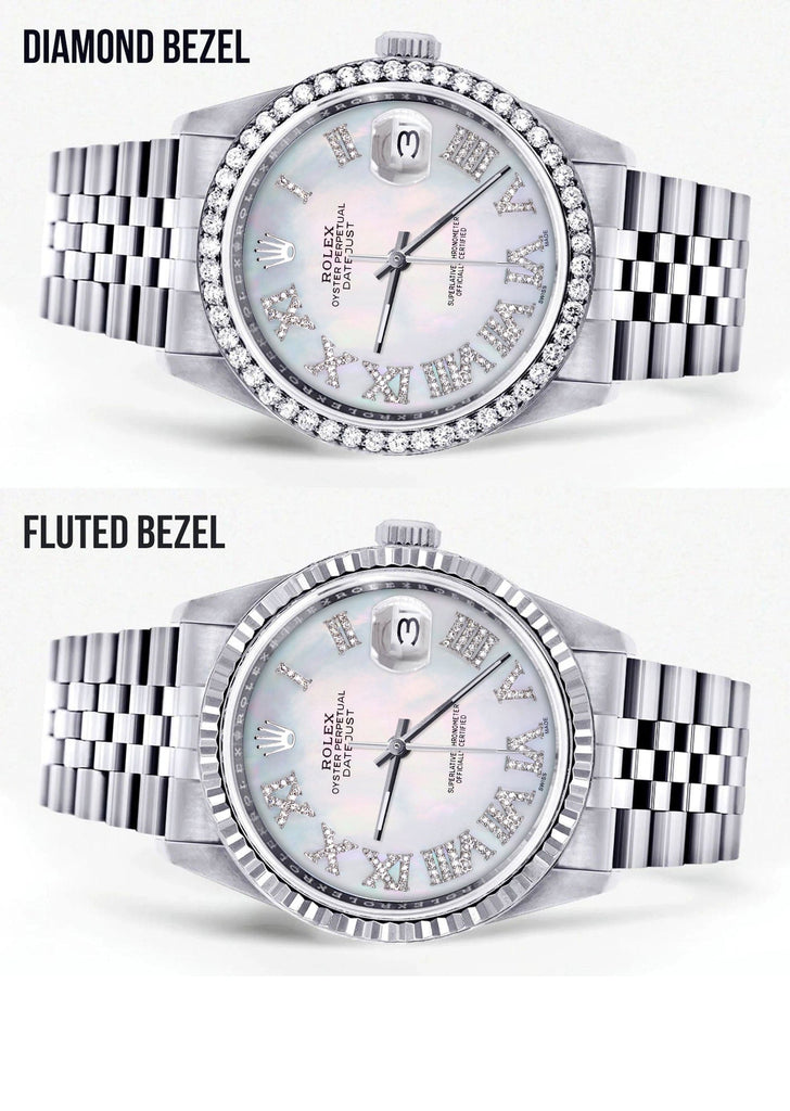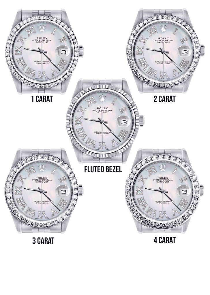 Rolex Datejust 36MM with a Jubilee Band. Customizable Diamond Bezel From 1.00-4.00 Carat. Below are more details of the watch.