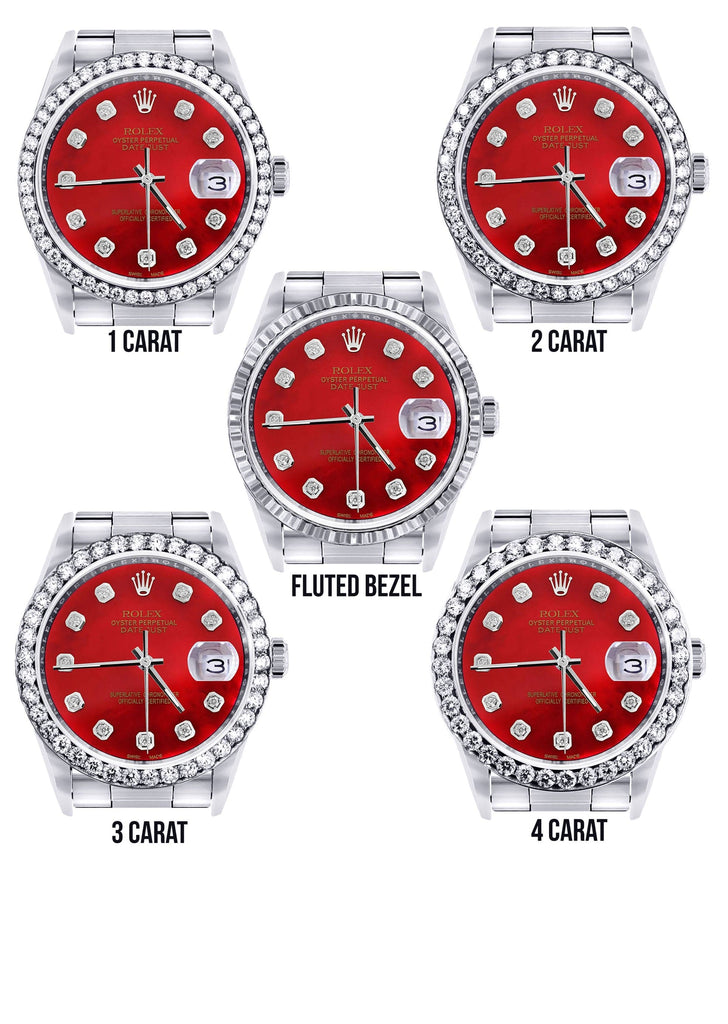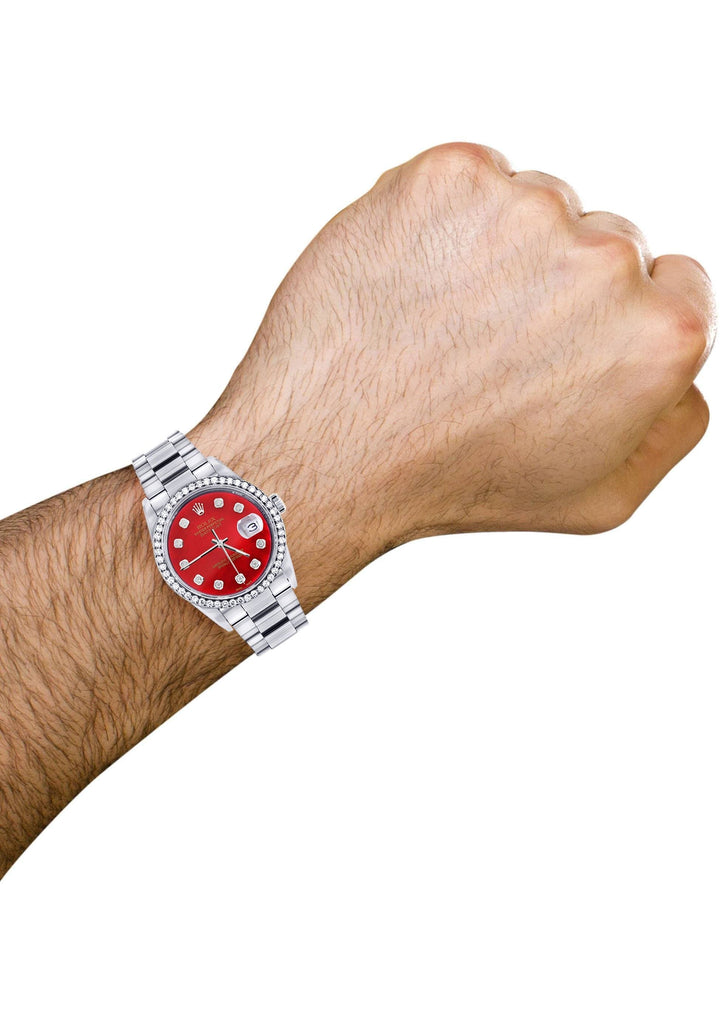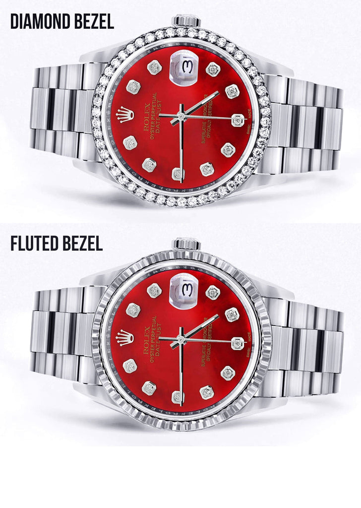Diamond Mens Rolex Datejust Watch 16200 | 36Mm | Red Diamond Dial | Oyster Band