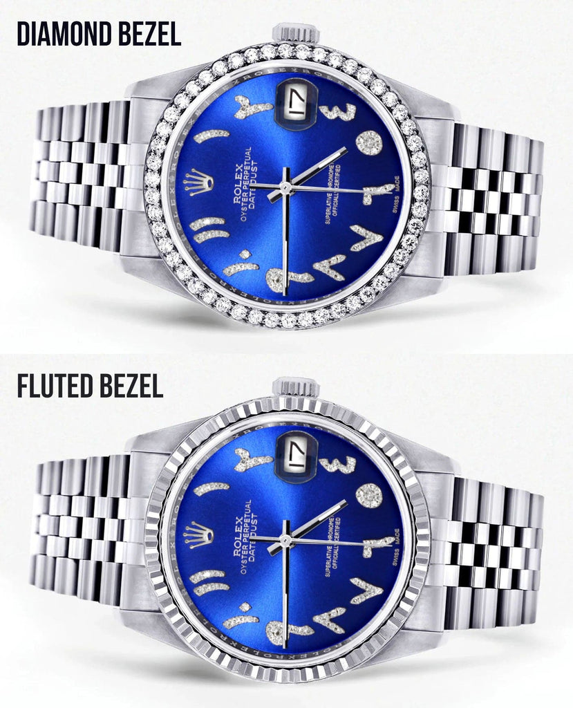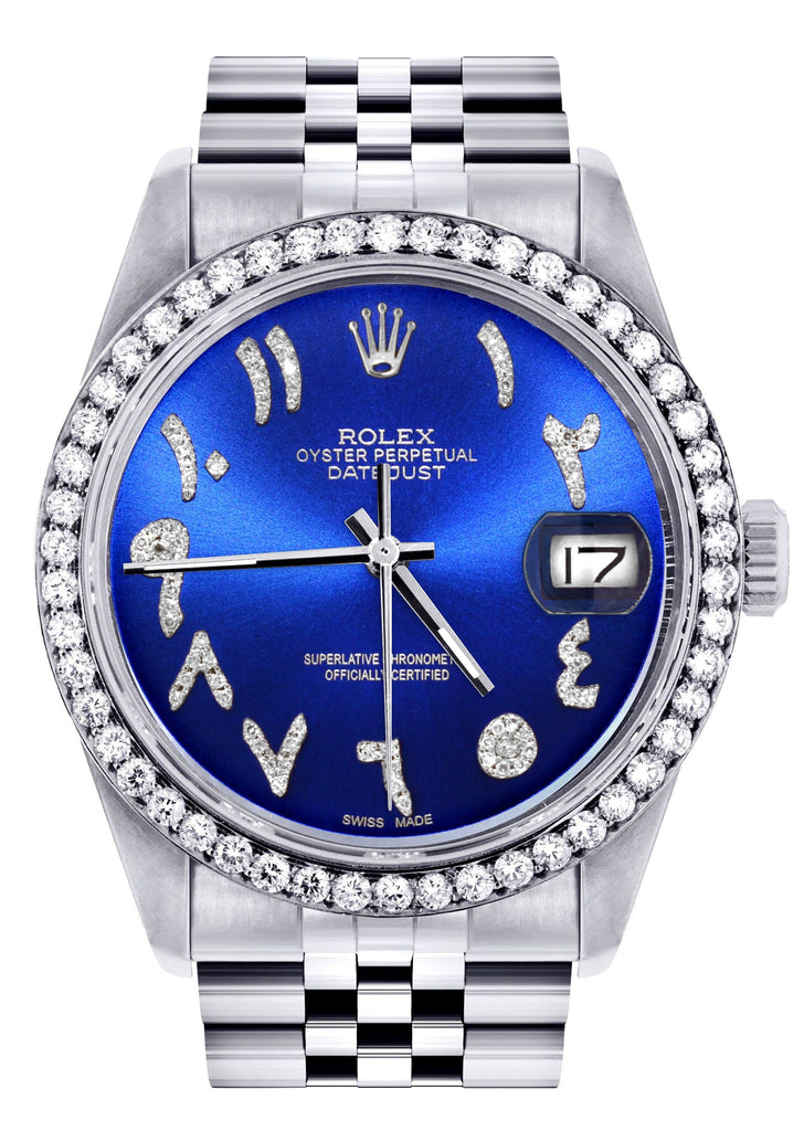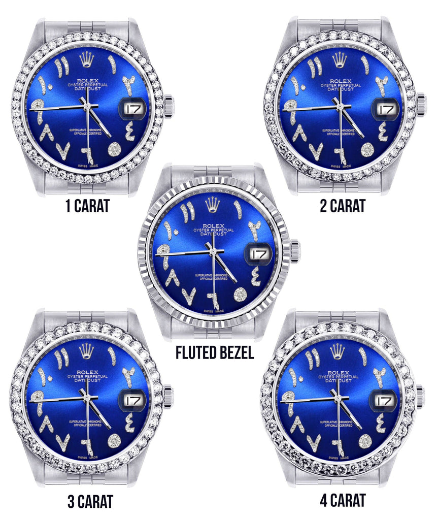 Rolex Datejust 36MM with a Jubilee Band. Customizable Diamond Bezel From 1.00-4.00 Carat. Below are more details of the watch.