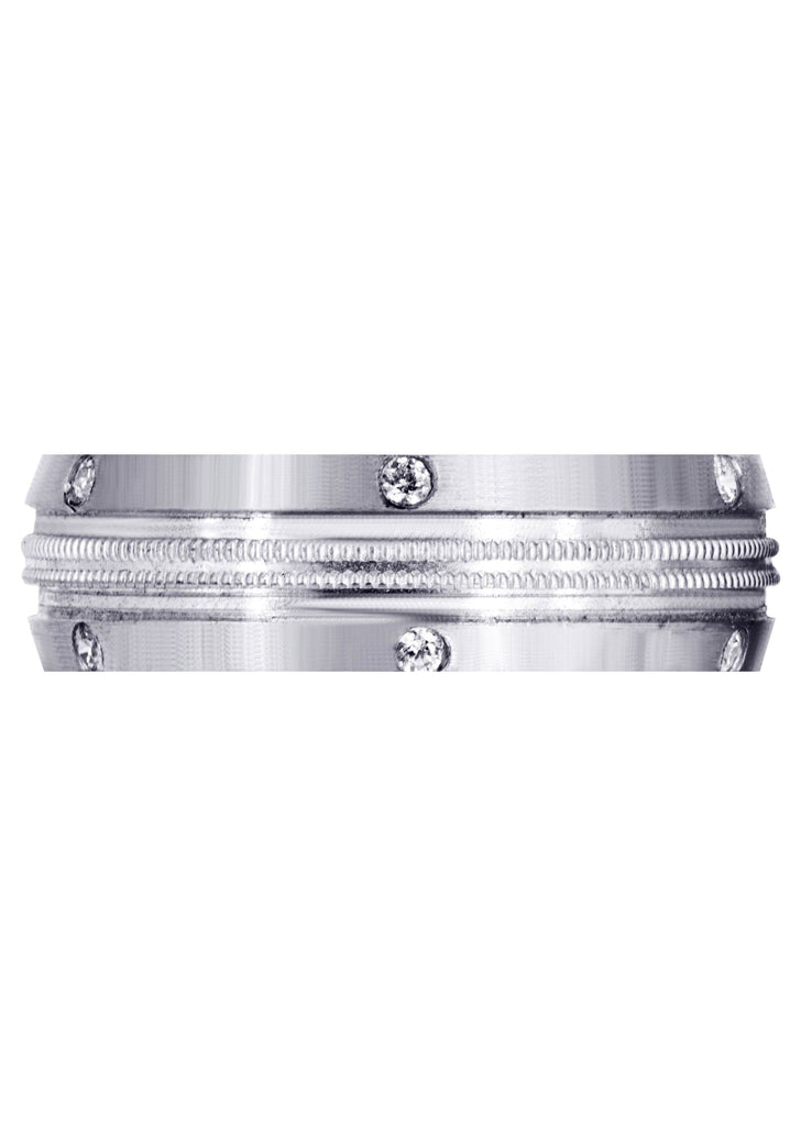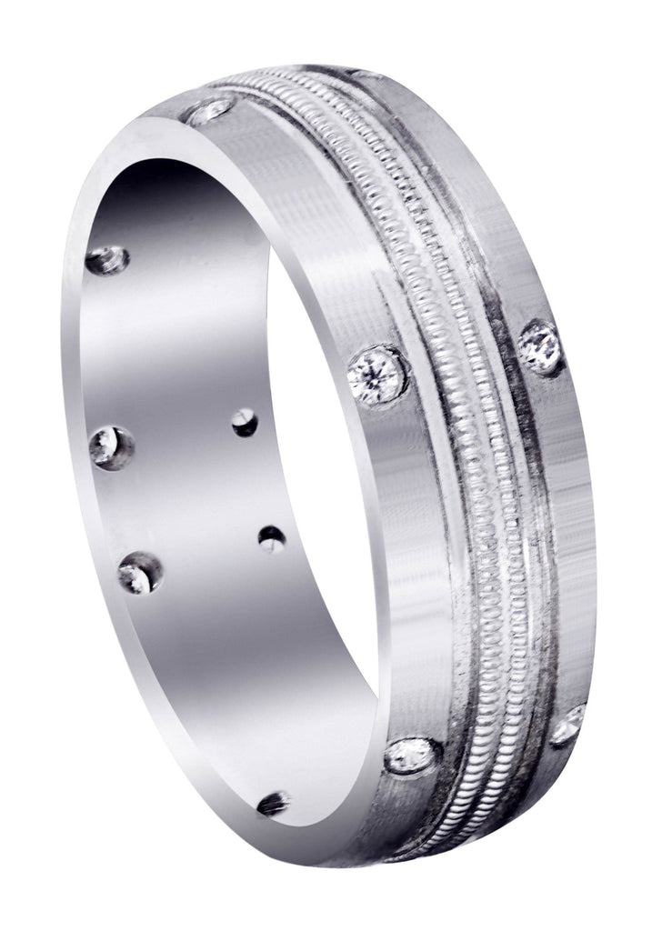 Diamond Mens Wedding Band Which Comes In 6.5 Mm Width, With 0.18 Carats Of VS Quality Diamonds.  The Ring Is In Satin Finish And Can Be Made In Any Metal Of Choice As Selected Above.