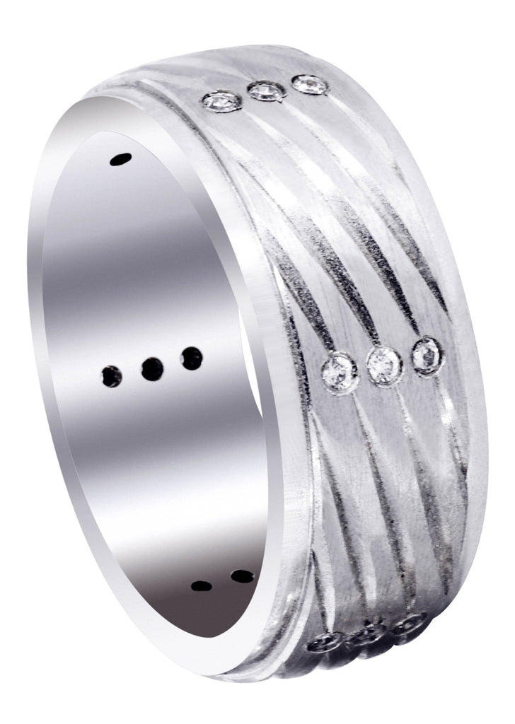 Diamond Mens Wedding Band Which Comes In 8.5 Mm Width, With 0.27 Carats Of VS Quality Diamonds.  The Ring Is In Satin Finish And Can Be Made In Any Metal Of Choice As Selected Above.