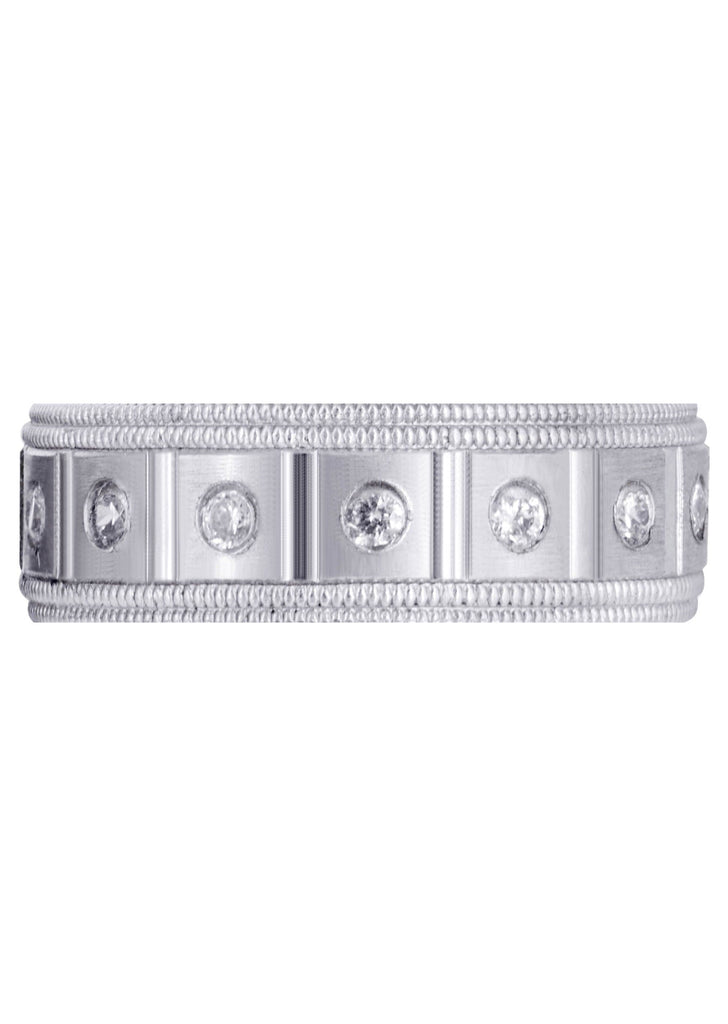 | Diamond Mens Wedding Band Which Comes In 7 Mm Width, With 0.45 Carats Of VS Quality Diamonds. The Ring Is In Satin / High Polish Finish And Can Be Made In Any Metal Of Choice As Selected Above. |
