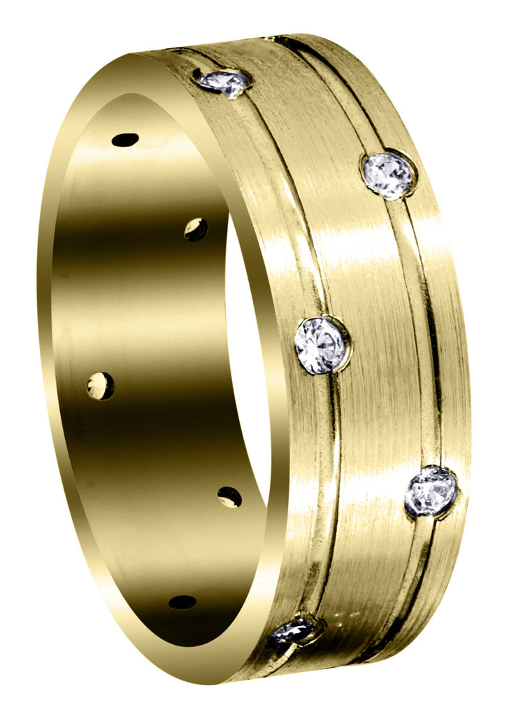 Diamond Mens Wedding Band Which Comes In 7.5 Mm Width, With 0.36 Carats Of VS Quality Diamonds.  The Ring Is In Satin Finish And Can Be Made In Any Metal Of Choice As Selected Above.
