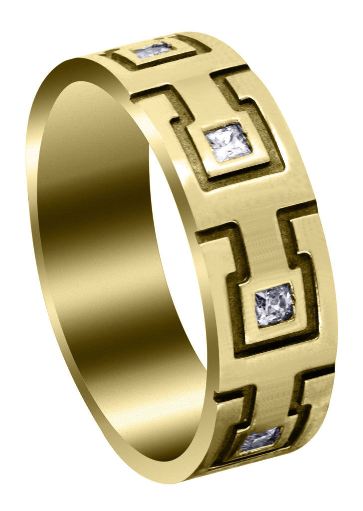 Yellow Gold Unique Mens Wedding Band | 0.4 Carats | High Polish Finish (Andy)