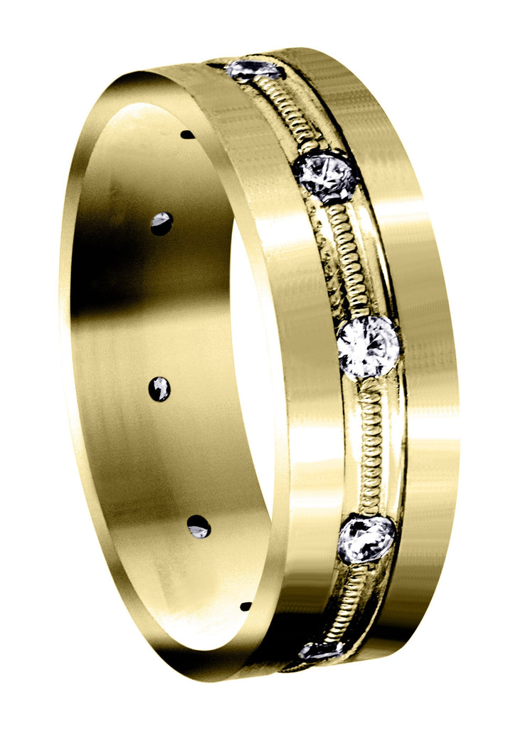 Diamond Mens Wedding Band Which Comes In 7 Mm Width, With 0.5 Carats Of VS Quality Diamonds.  The Ring Is In Satin Finish And Can Be Made In Any Metal Of Choice As Selected Above.
