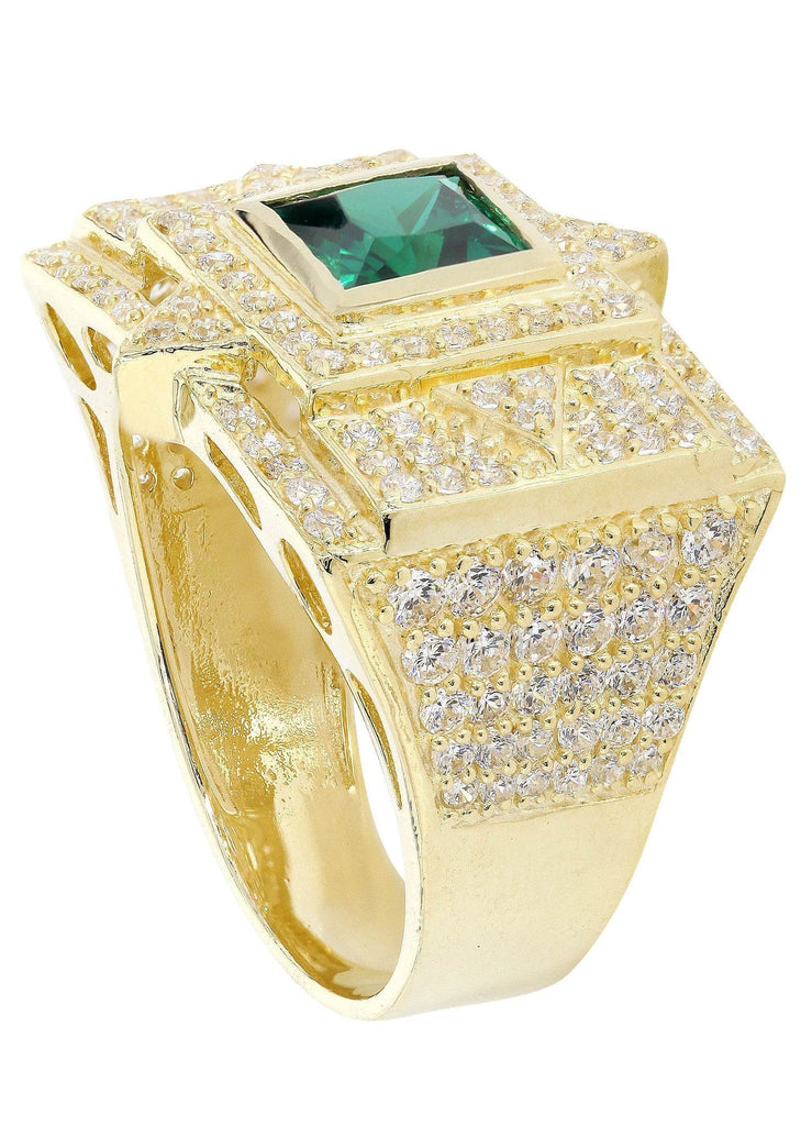 Emerald and Cz 10K Yellow Gold Mens Ring. The Ring Weighs Approximately 13.3 Grams With An Average Length Of 20 Mm And Average Width Of 22 Mm