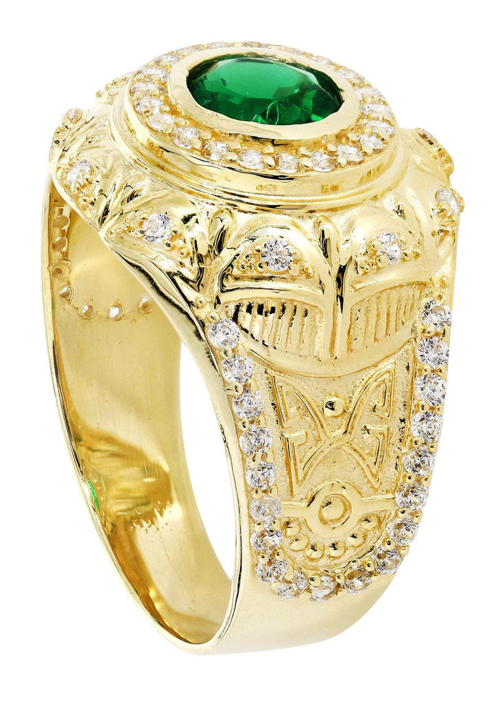 Emerald and Cz 10K Yellow Gold Mens Ring. The Ring Weighs Approximately 6.6 Grams With An Average Length Of 17 Mm And Average Width Of 20 Mm