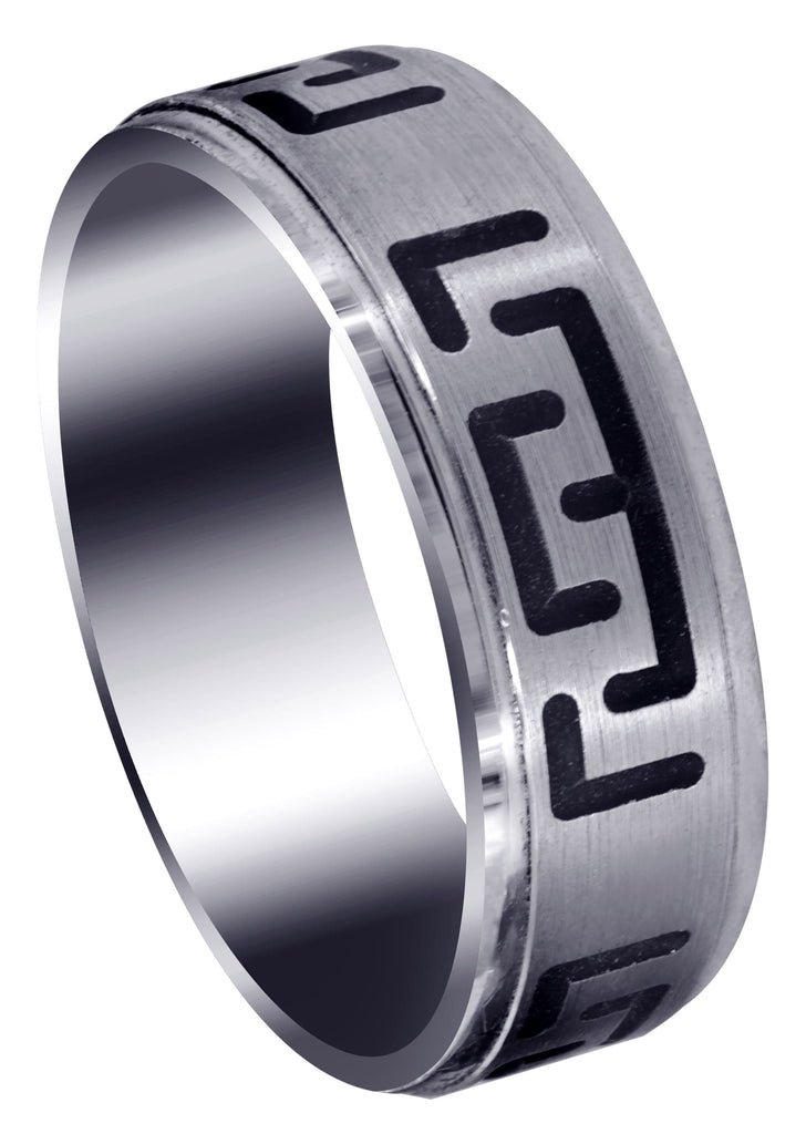 Fancy Carved Contemporary Mens Wedding Band Which Comes In 7 Mm Width,  The Ring Is In Satin / High Polish Finish And Can Be Made In Any Metal Of Choice As Selected Above.