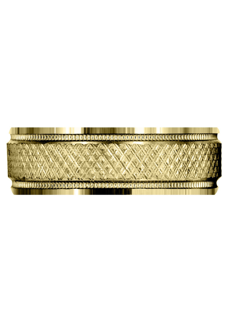 Yellow Gold Fancy Carved Contemporary Mens Wedding Band | Diamond Cut Finish (Christopher)