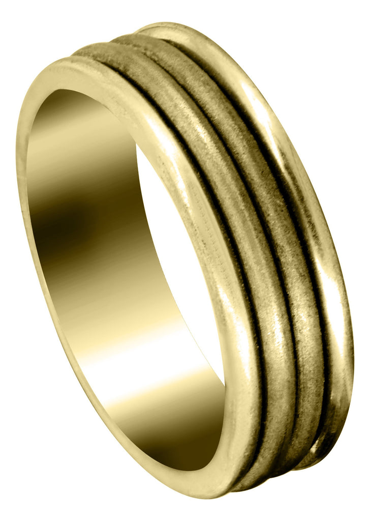 Yellow Gold Fancy Carved Contemporary Mens Wedding Band | Sand Blast Finish (Leo)