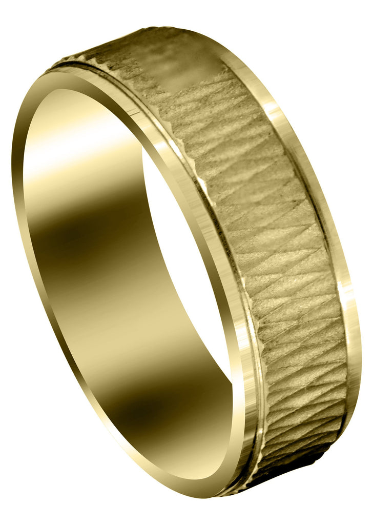 Yellow Gold Fancy Carved Contemporary Mens Wedding Band | Sand Blast / High Polish Finish (Mason)