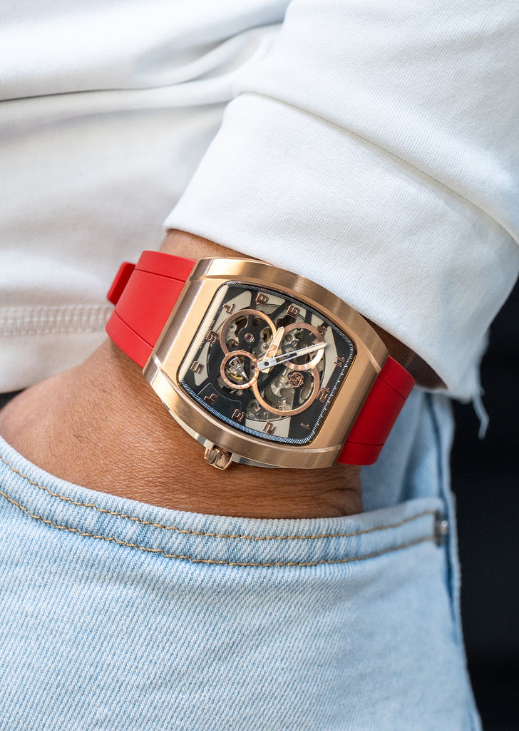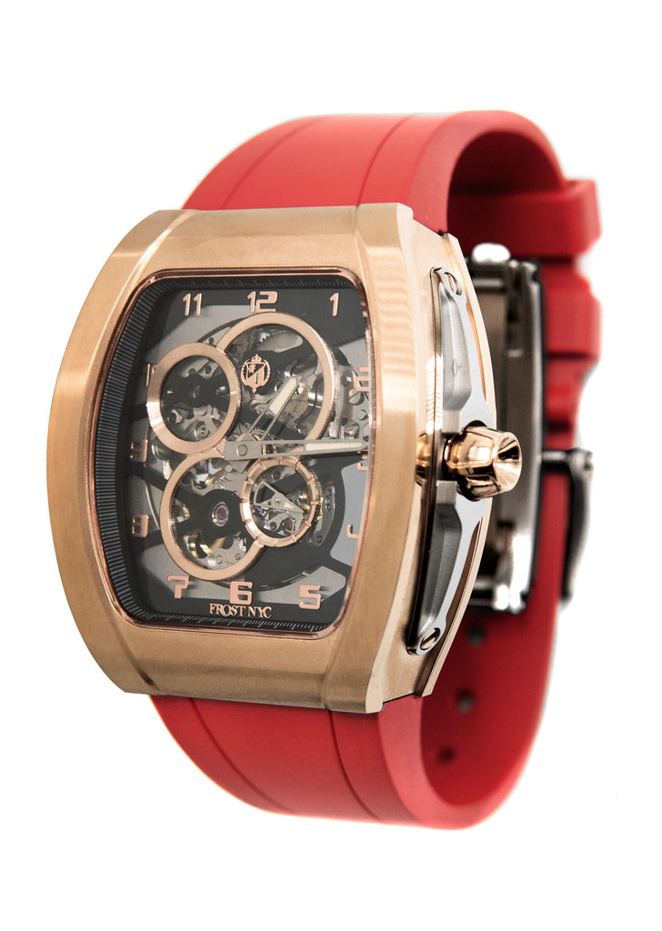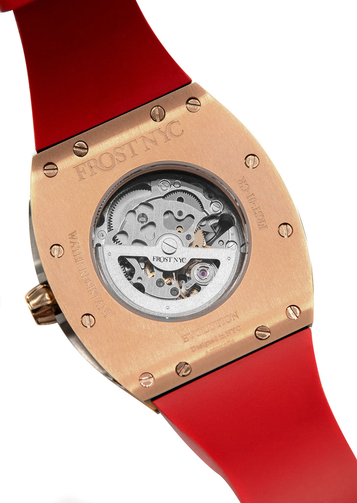 Frost NYC Mens Watch - Automatic Skeleton Rose Sport Watch | FRST-01-RC | Red