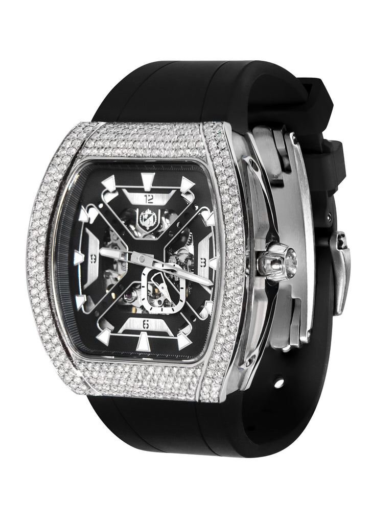 Frost NYC Mens Watch - Automatic Skeleton Stainless Steel Diamond Sport Watch | FRST-01-XS-D | Black