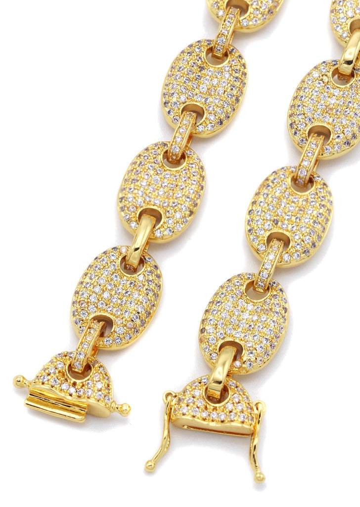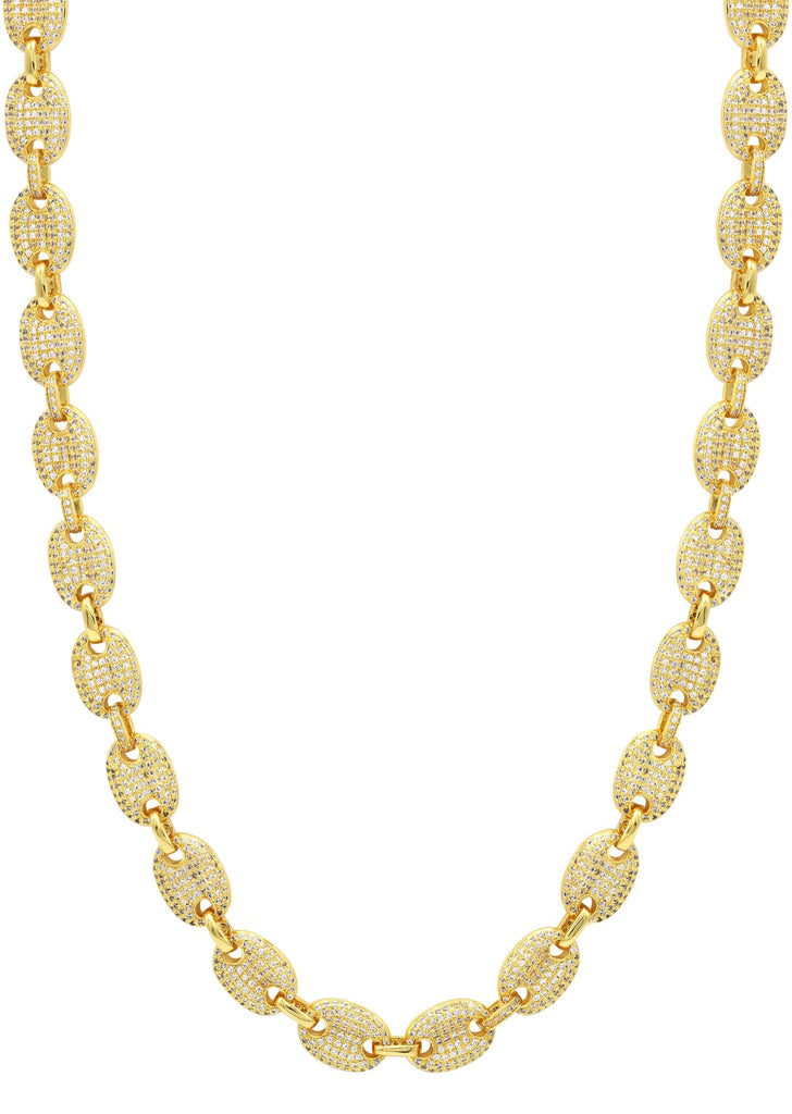 Gold Plated Mens CZ Gucci Puff Chain. The Chain can be customized to any width and length by selecting the options above. Once you select your length and width, the price and the weight will adjust.