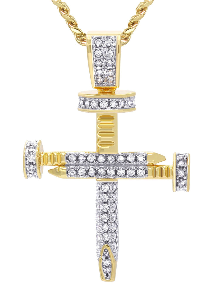 Gold Plated Cuban Link Chain & Cross Pendant Which weighs 15 Grams. The Width Of The Pendant Is 1.08 Inches And The Length Of The Pendant Is 1.6 Inches. The Width Of The Chain Is 3mm And The Length Can Be Adjusted Above.