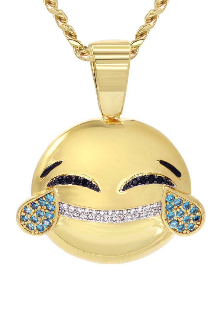 Gold Plated Cuban Link Chain & Emoji Pendant Which weighs 16.3 Grams. The Width Of The Pendant Is 1.2 Inches And The Length Of The Pendant Is 1.5 Inches. The Width Of The Chain Is 3mm And The Length Can Be Adjusted Above.