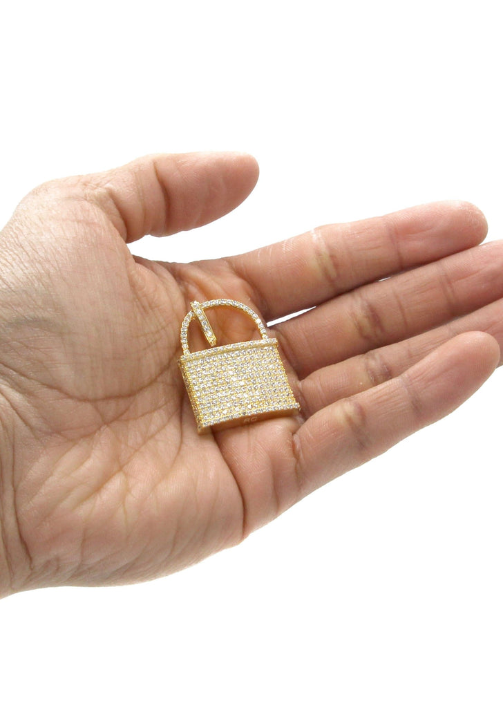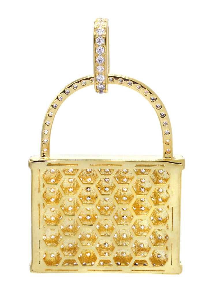 Gold Plated Lock Pendant That Weighs 10.7 Grams. The Length Of The Pendant Is 1.8 Inches And The Width is 1.1 Inches.