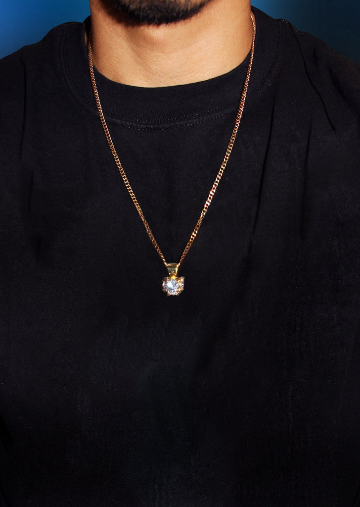 Mens Gold Plated Rope Chain & Cubic Zirconia Pendant | Appx. 19 Grams