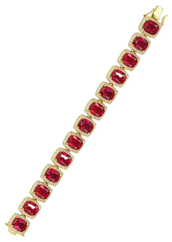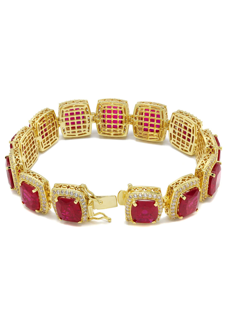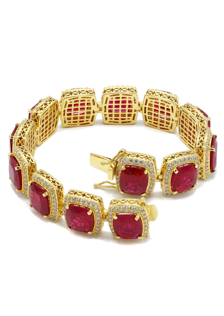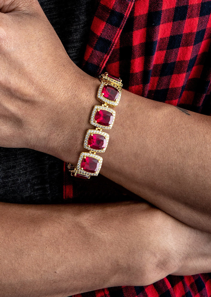 Gold Plated Mens Iced Ruby Bracelet