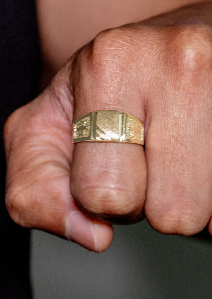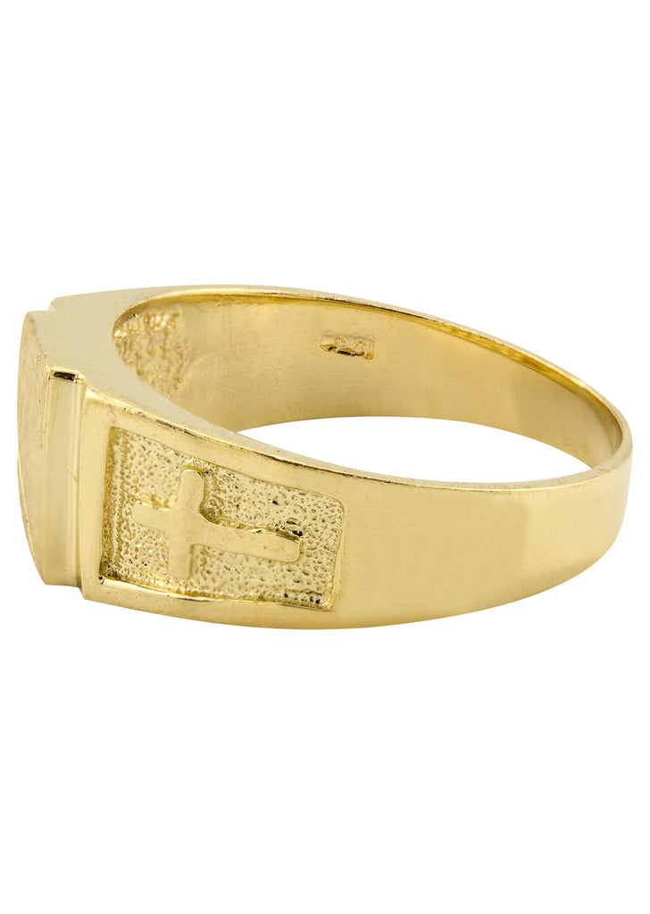 10K Yellow Gold Mens Cross Signet Ring. The Ring Weighs Approximately 5 Grams With An Average Length Of 0.4 Inches And Average Width Of 0.9 Inches. Each Signet ring can be customized with an engraving. Write the engraving you want and we will customize it for you.