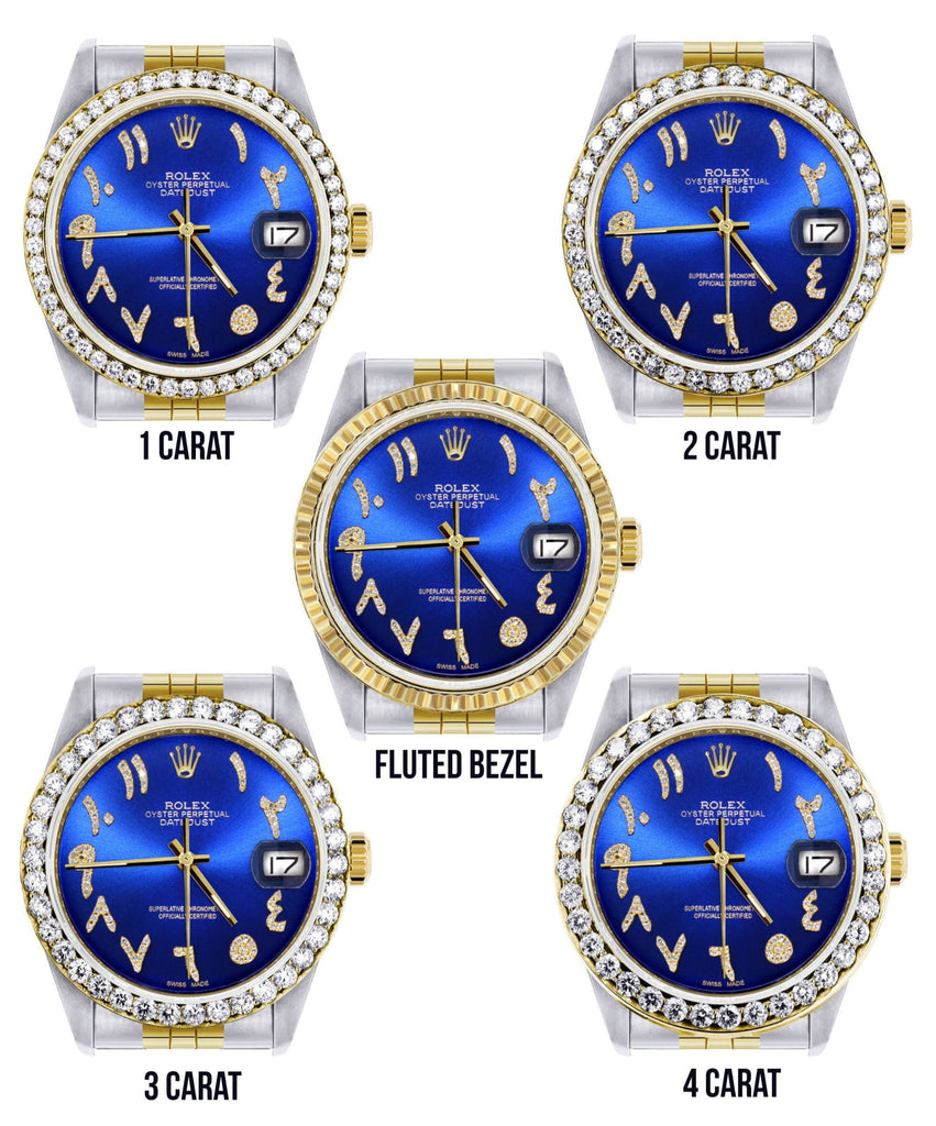 Rolex Datejust 36MM with a Jubilee Band. Customizable Diamond Bezel From 1.00-4.00 Carat. Below are more details of the watch.