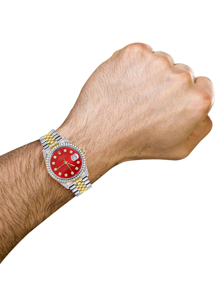 Gold & Steel Rolex Datejust Watch 16233 for Women | 36Mm | Diamond Red Mother Of Pearl Dial | Jubilee Band