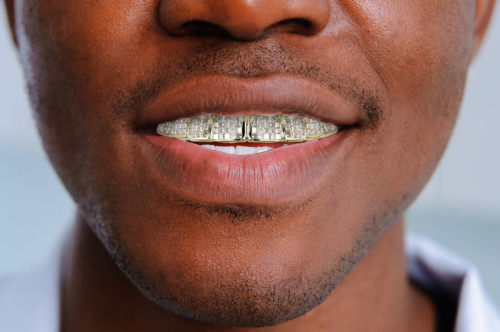 10K &14K Real Gold and Diamond Grills, Grills are made with F-G in color and VS clarity diamonds Please customize your grill with options above. Once order is placed, we will ship an impression kit with instructions to make your own mold. Once your mold is done, please use a prepaid label included in your kit to send us your mold. After we receive your mold we will begin working on your grill right away. Due to the custom nature of this product, please allow 2-4 weeks for completion. After your grill is completed we will ship the completed product to you. If you have any questions, would like more information, or customize your grill further do not hesitate to contact us at 1-888-485-1061.