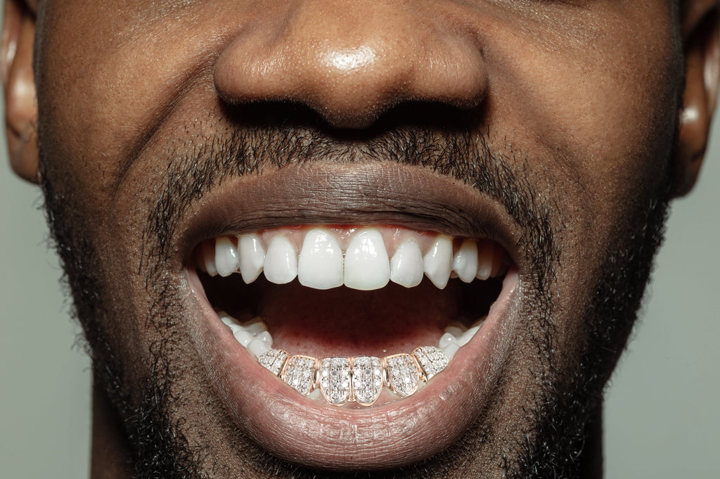 10K &14K Real Gold and Diamond Grills, Grills are made with F-G in color and VS clarity diamonds Please customize your grill with options above. Once order is placed, we will ship an impression kit with instructions to make your own mold. Once your mold is done, please use a prepaid label included in your kit to send us your mold. After we receive your mold we will begin working on your grill right away. Due to the custom nature of this product, please allow 2-4 weeks for completion. After your grill is completed we will ship the completed product to you. If you have any questions, would like more information, or customize your grill further do not hesitate to contact us at 1-888-485-1061.