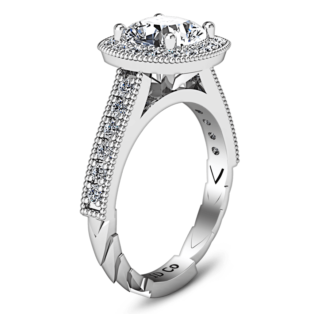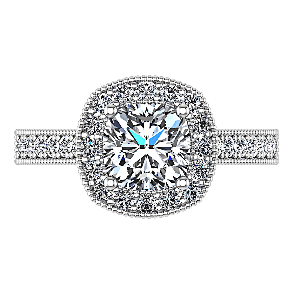 Halo Cushion Cut Diamond Engagement Ring Geneve 14K White Gold