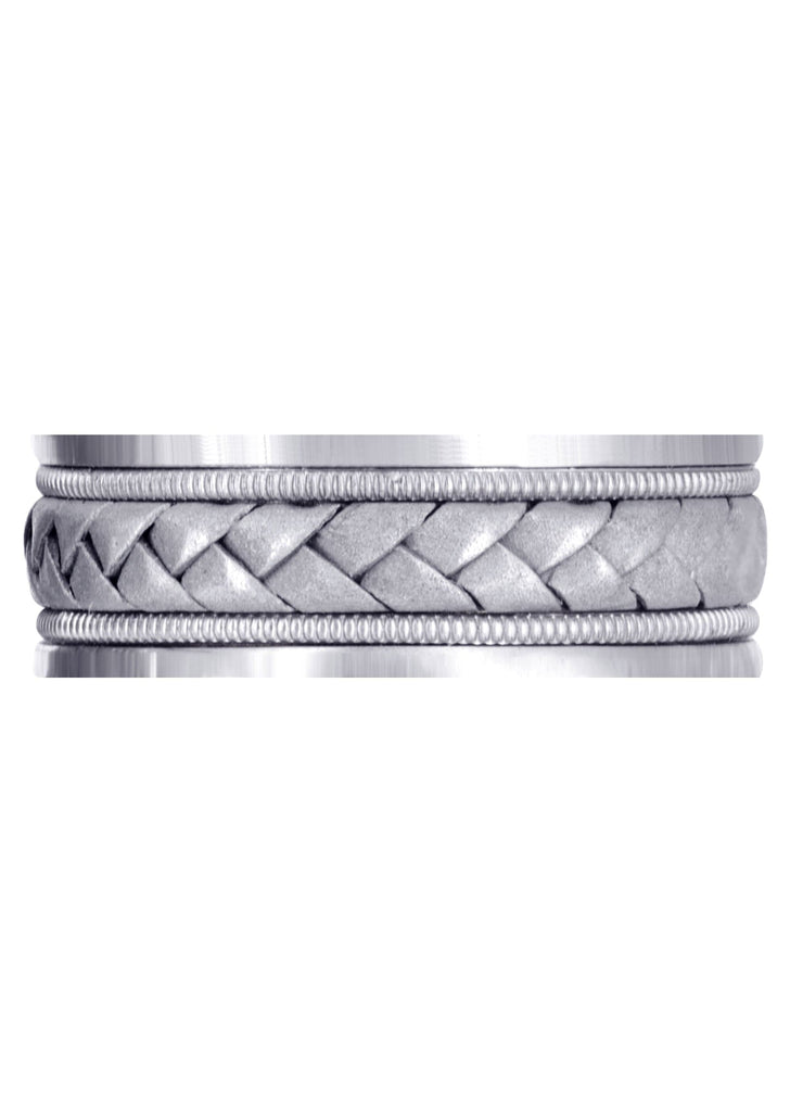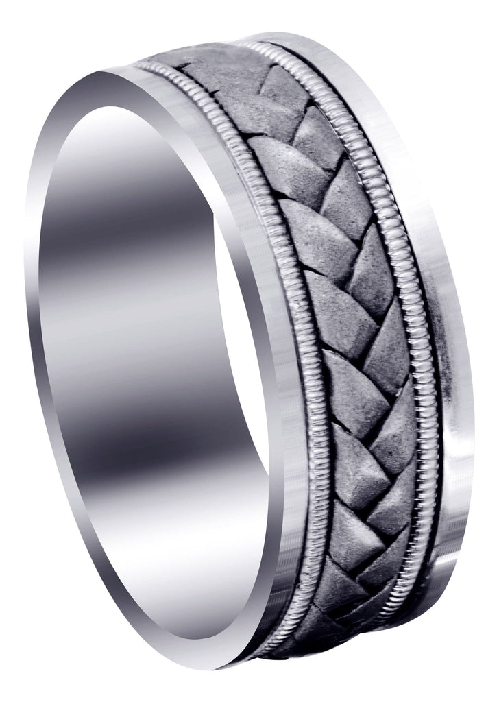 Hand Woven Mens Wedding Band Which Comes In 8 Mm Width,  The Ring Is In Sand Blast Finish And Can Be Made In Any Metal Of Choice As Selected Above.
