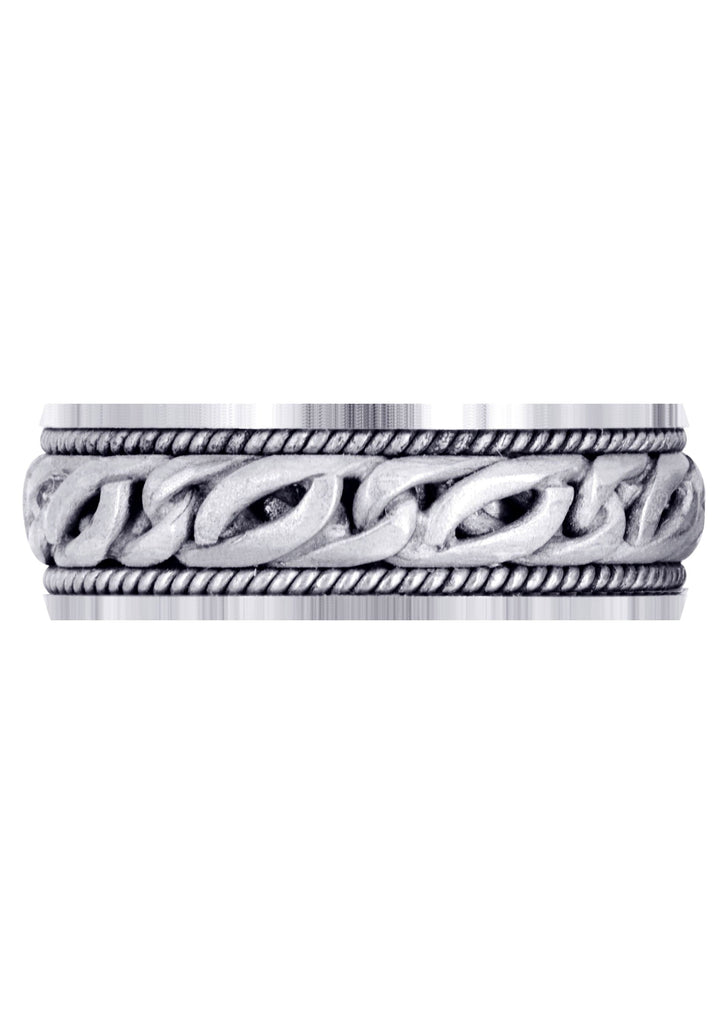 Hand Woven Mens Wedding Band Which Comes In 7 Mm Width,  The Ring Is In Satin Finish And Can Be Made In Any Metal Of Choice As Selected Above.
