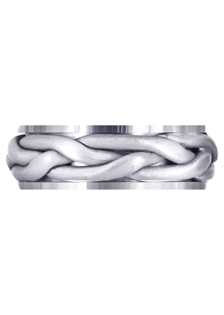 Hand Woven Mens Wedding Band Which Comes In 8.5 Mm Width,  The Ring Is In Satin Finish And Can Be Made In Any Metal Of Choice As Selected Above.