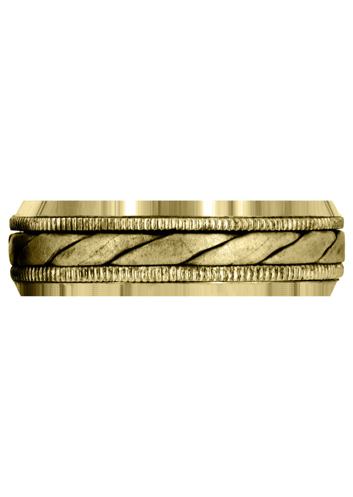 Yellow Gold Hand Woven Mens Wedding Band | Cross Satin Finish (Tucker)