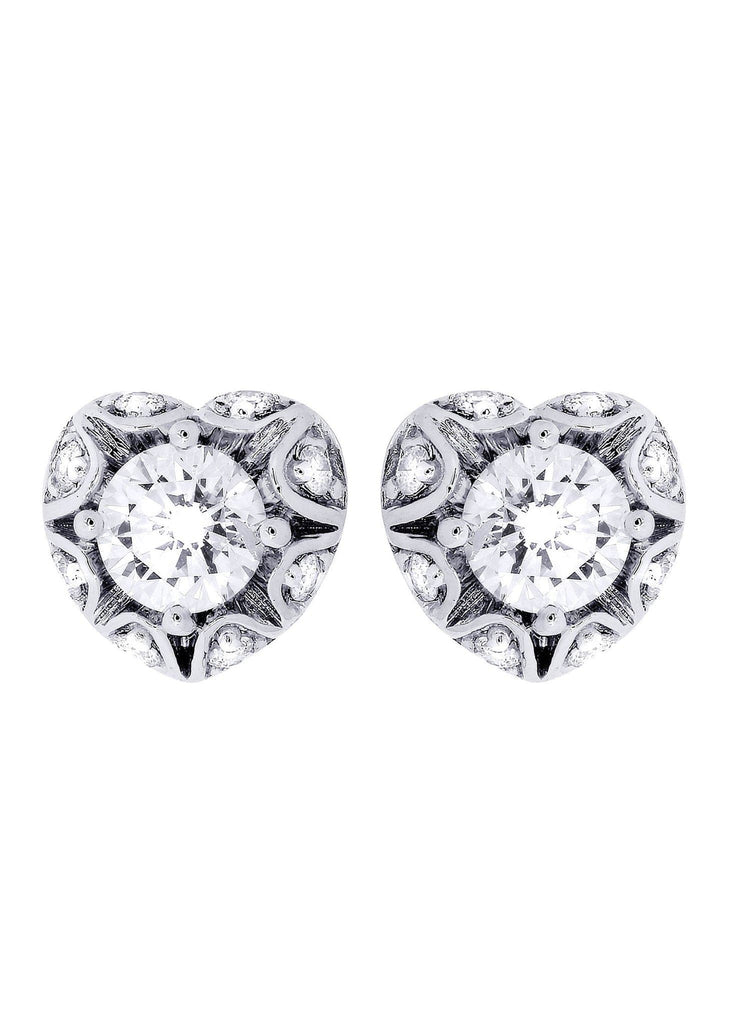 Heart Diamond Stud Earrings For Men | 14K White Gold | 0.7 Carats