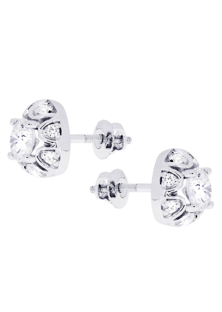 Heart Diamond Stud Earrings In 14K White Gold With Approximately 0.7 Carats Of Diamonds. Earrings Come With An Average Length Of 7 Mm And 7 Mm In Width.