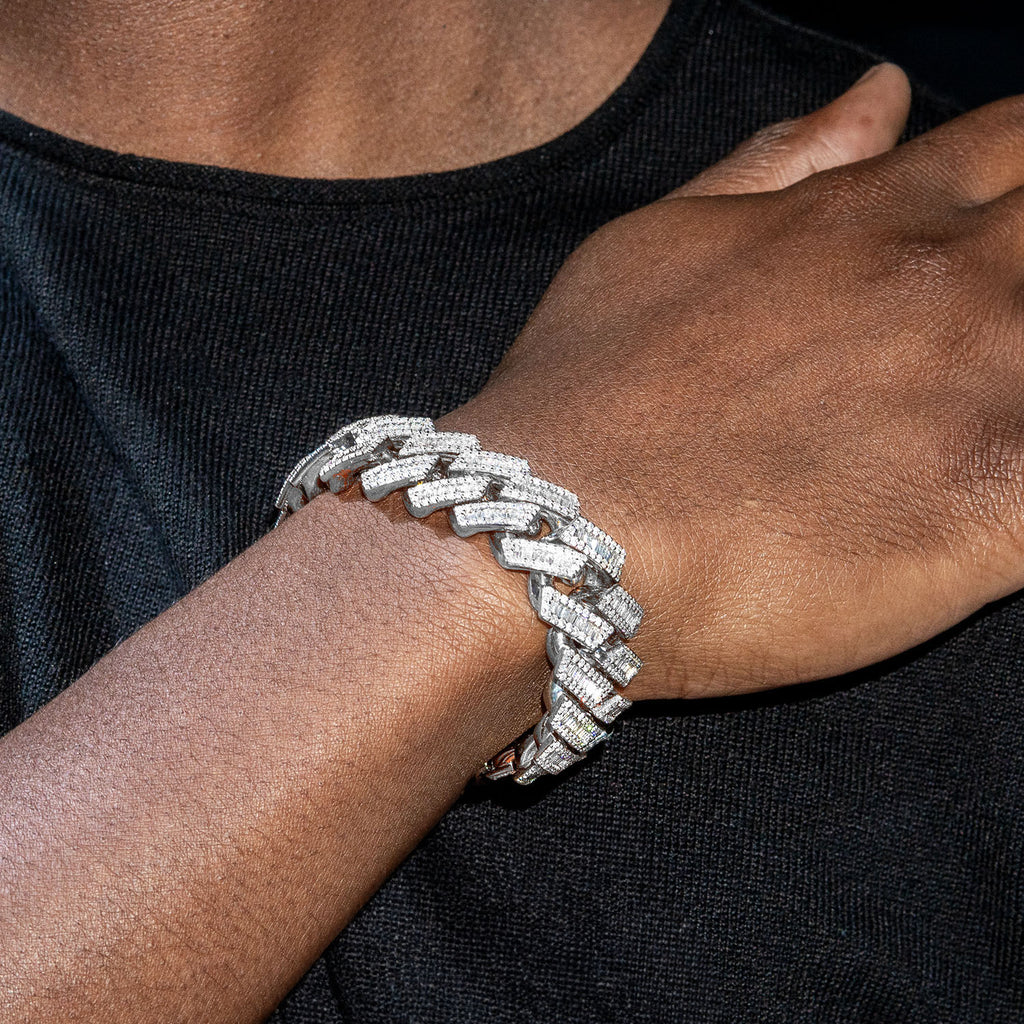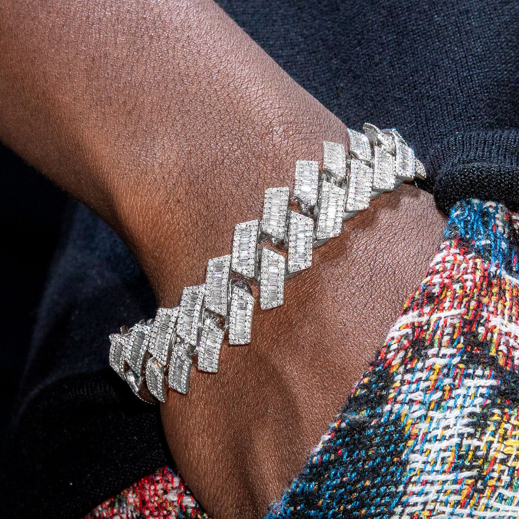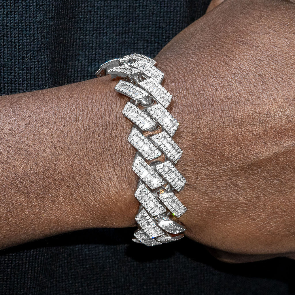 14K White Gold Iced Out Bracelet. This bracelet is customizable, so you can pick your length above. Once you selected your options, you can see the adjusted gram weight above the price. This bracelet comes in VS Clarity and G/H Color Quality Diamonds. All high jewelry comes with laboratory appraisal for insurance purposes. |