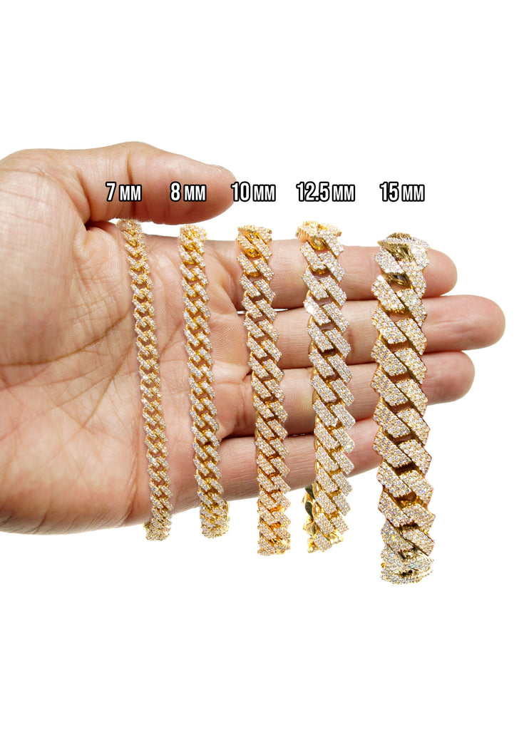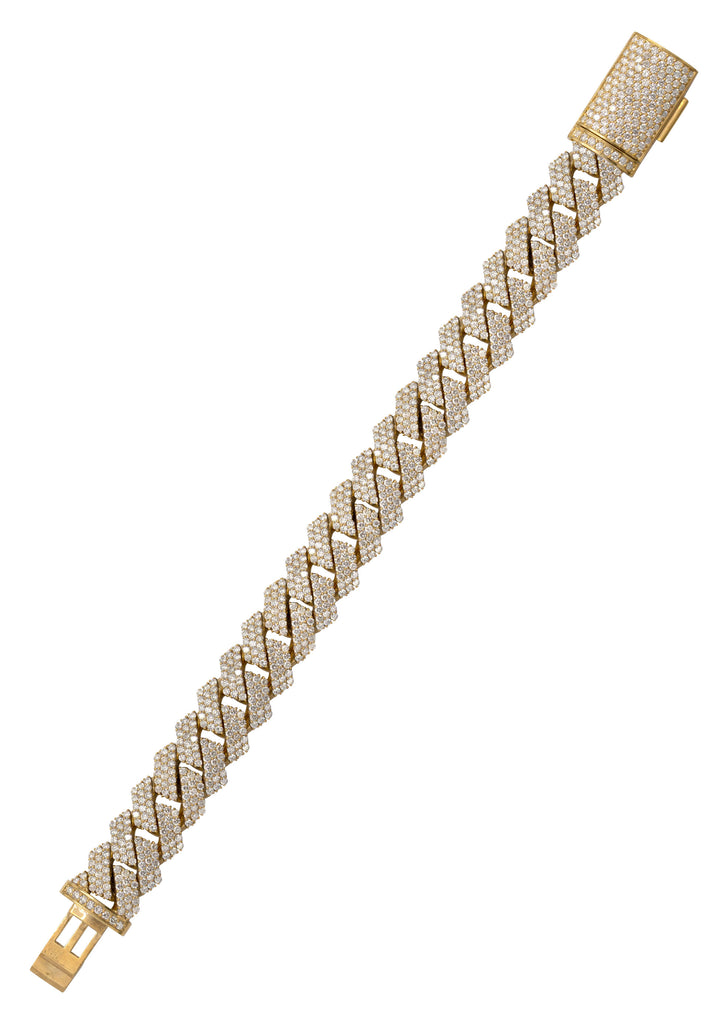 Iced Out Diamond Prong Cuban Link Yellow Gold Bracelet 10K/14K