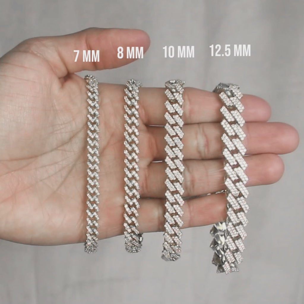 10K/14K Iced Out Diamond Solid Miami Cuban Link Bracelet. These bracelets are fully customizable, so you can pick your gold purity, length and width above. Once you selected your gold purity, length and width, you can see the adjusted gram weight below the price. The quality of the diamonds are VS Clarity and G/H Color.
