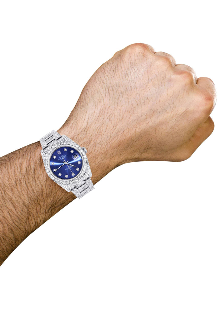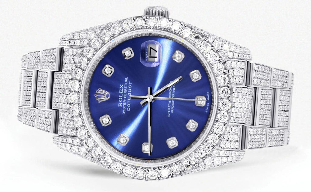 Iced Out Rolex Datejust 36 MM | Stainless Steel | 16.5 Carats of Diamonds | Blue Diamond Dial | Oyster Band | Model 116200