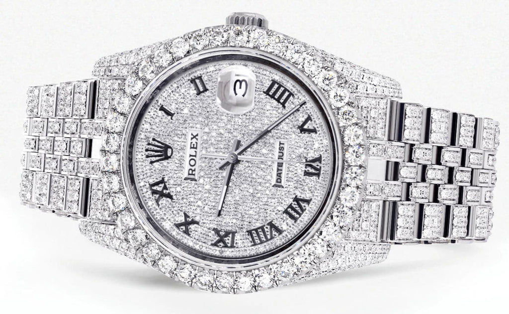 Iced Out Rolex Datejust 36 MM | Stainless Steel | 16.5 Carats of Diamonds | Full Diamond Roman Diamond Dial | Jubilee Band | Model 116200