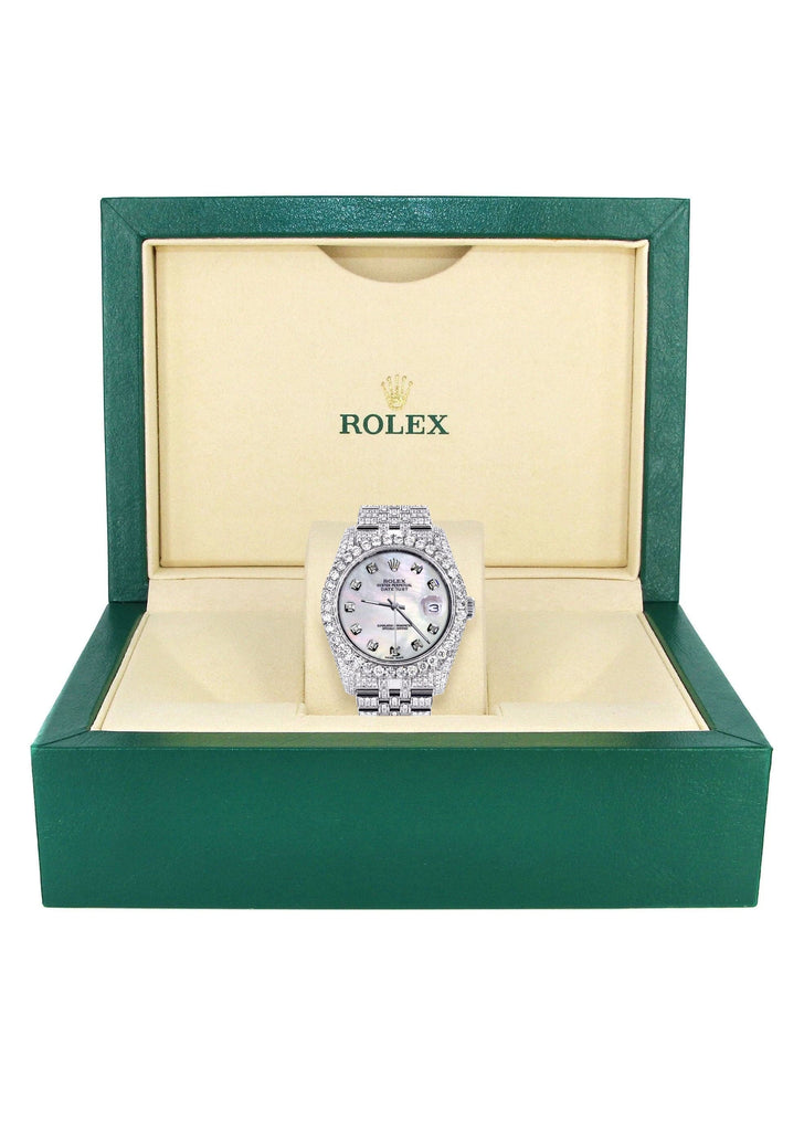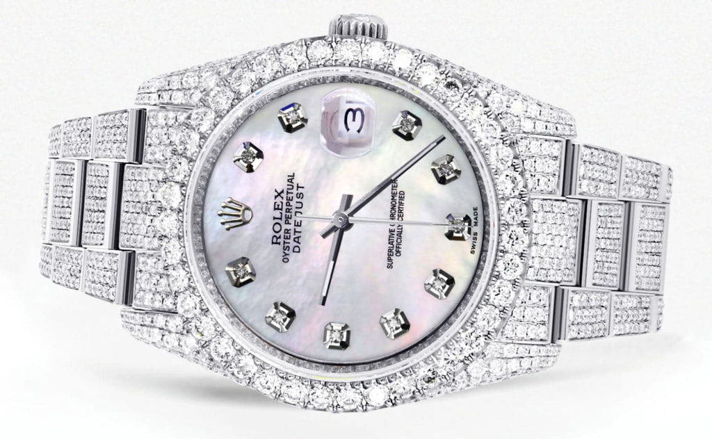 Iced Out Rolex Datejust 36 MM | Stainless Steel | 16.5 Carats of Diamonds | Light Mother of Pearl Diamond Dial | Oyster Band | Model 116200